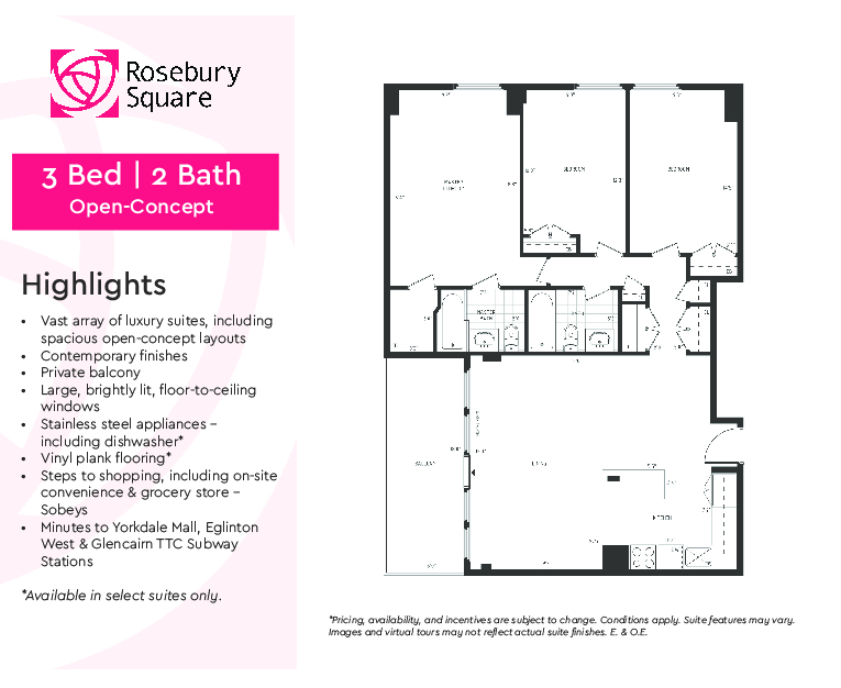 Located just a ten-minute walk from Eglinton West and Glencairn subway stations, the LRT, and a short drive to Yorkdale Mall, you’re connected to the best of Toronto. With an on-site Sobeys, pharmacy, daycare, optical clinic, wellness and physio clinic, nail salon, swim house, dry cleaning services, and a playground, everyday essentials and more are right at your fingertips. Enjoy exclusive amenities like expansive private balconies, secure underground parking, and thoughtfully designed open-concept floor plans that provide the perfect backdrop for both relaxation and entertaining.