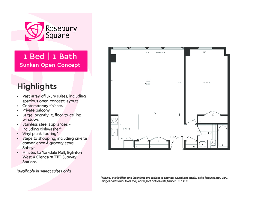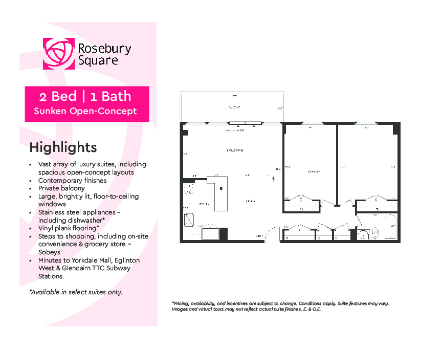 Experience the convenience of having an on-site Sobeys grocery store, pharmacy, daycare, optical clinic, wellness and physio clinic, nail salon, swim house, dry cleaning services, and a playground—all right at your doorstep. Indulge in premium amenities like large private balconies, secure underground parking with fob access, and stunning open-concept floor plans designed for modern living. Live where convenience meets elegance—welcome to Rosebury Square.